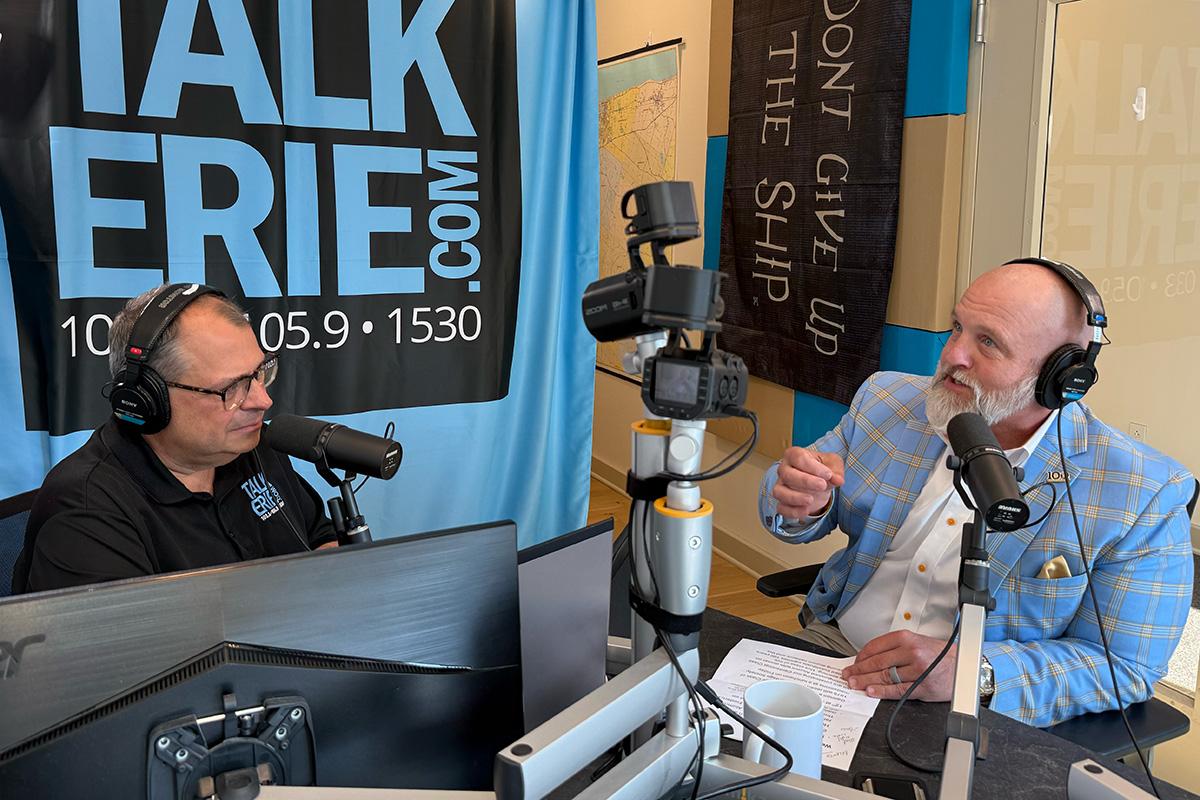 Joel Natalie interviews Dr. Walter Iwanenko, President of Gannon University. Photo by Shani Bills, TalkErie.com.
